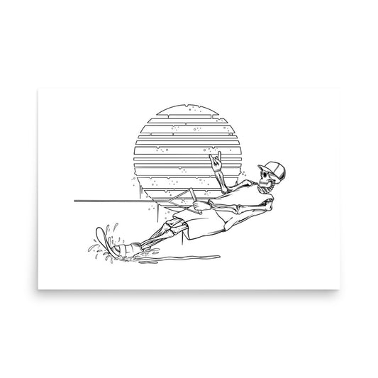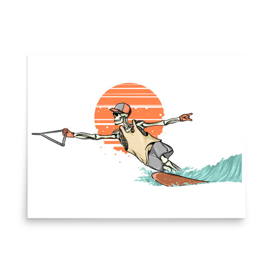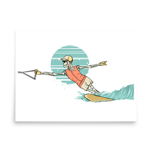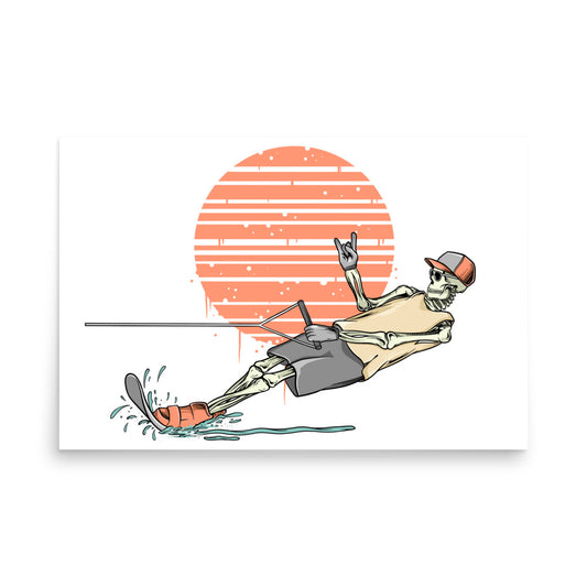 SKELLIES Waterskiing Man Poster - Skeleton Waterskiing Graphic, Wall Art for Waterskiing Enthusiasts