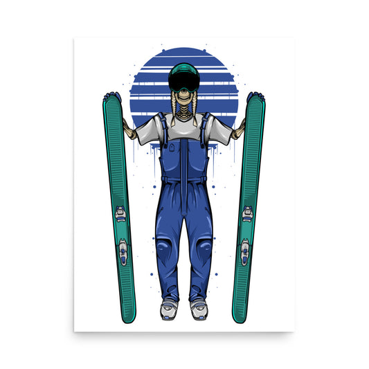 SKELLIES Skiing Woman Poster - Skeleton Skiing Graphic, Wall Art for Skiing Enthusiasts