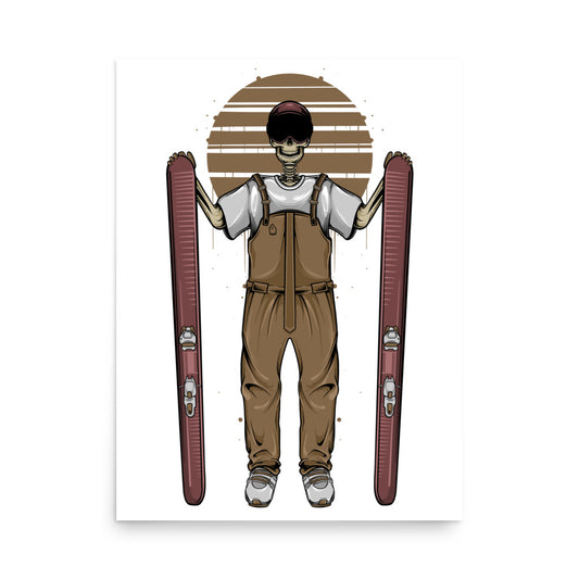 SKELLIES Skiing Man Poster - Skeleton Skiing Graphic, Wall Art for Skiing Enthusiasts