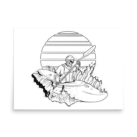 SKELLIES Kayaking Man Poster - Skeleton Kayaking Line Graphic, Wall Art for Kayaking Enthusiasts