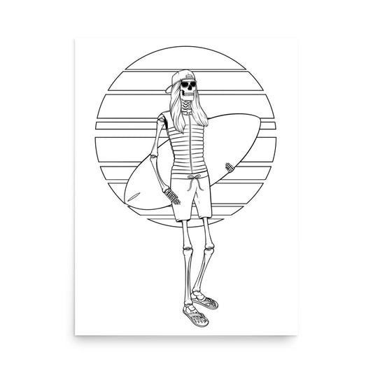 SKELLIES Wakesurfing Woman Poster - Skeleton Wakesurfing Line Graphic, Wall Art for Wakesurfing Enthusiasts