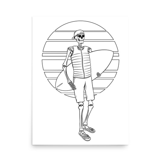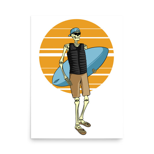SKELLIES Wakesurfing Man Poster - Skeleton Wakesurfing Graphic, Wall Art for Wakesurfing Enthusiasts