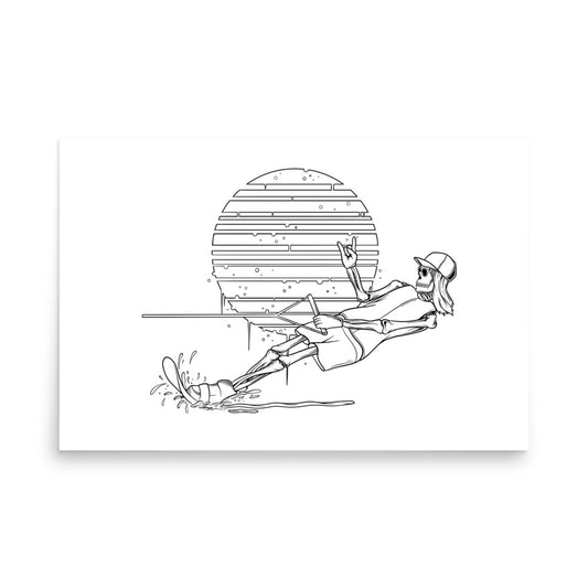 SKELLIES Waterskiing Man Poster - Skeleton Waterskiing Line Graphic, Wall Art for Waterskiing Enthusiasts
