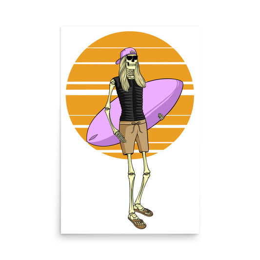 SKELLIES Wakesurfing Woman Poster - Skeleton Wakesurfing Graphic, Wall Art for Wakesurfing Enthusiasts