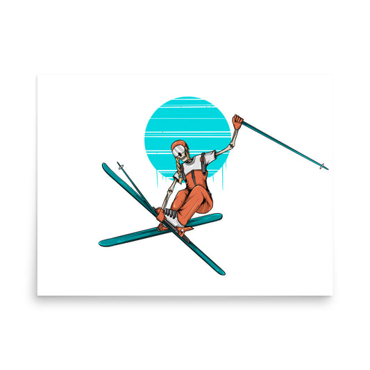 SKELLIES Ski flip Man Poster - Skeleton Skiing Graphic, Wall Art for Skiing Enthusiasts