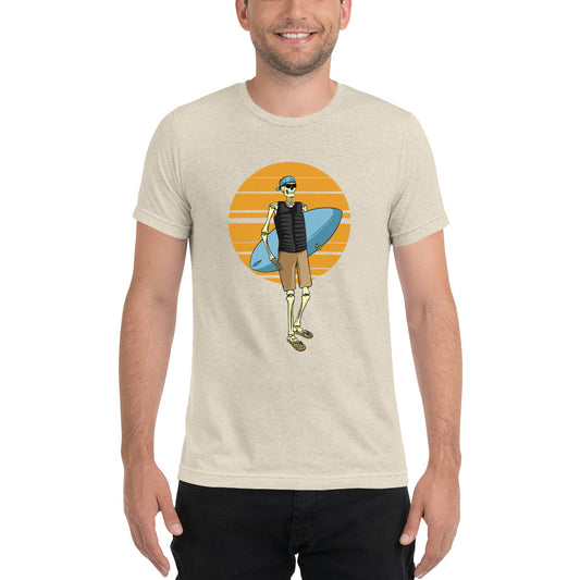 SKELLIES Men's Graphic Tri-Blend T-shirt - Skeleton Wakesurfing T-shirt Print, Regular Fit, Casual Wear