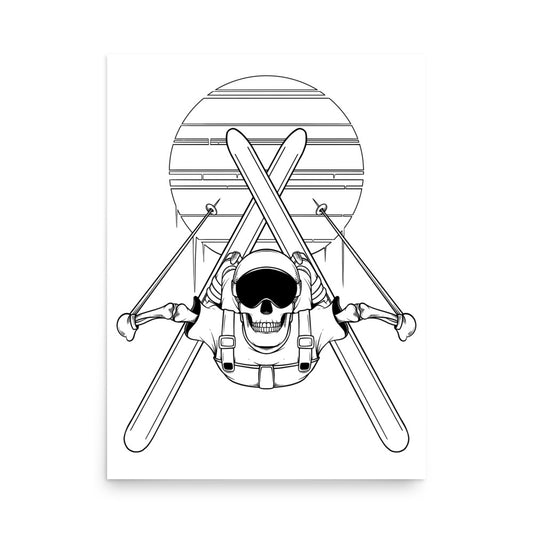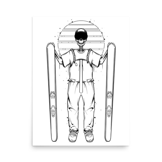 SKELLIES Ski flip Man Poster - Skeleton Skiing Graphic, Wall Art for Skiing Enthusiasts