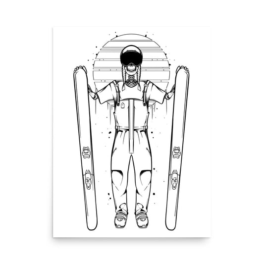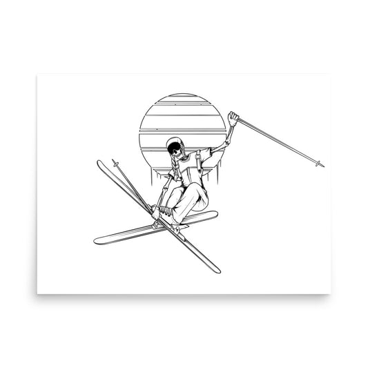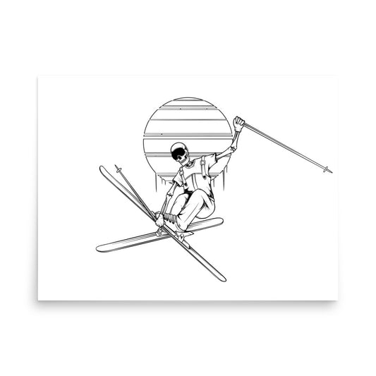 SKELLIES Ski flip Man Poster - Skeleton Skiing Line Graphic, Wall Art for Skiing Enthusiasts