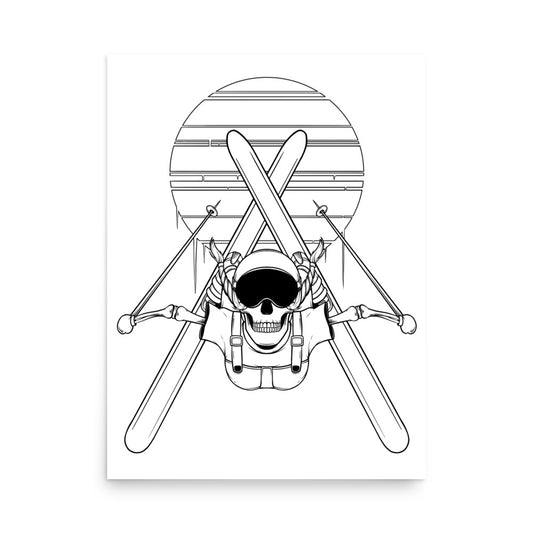 SKELLIES Skiing Man Poster - Skeleton Skiing Graphic, Wall Art for Skiing Enthusiasts