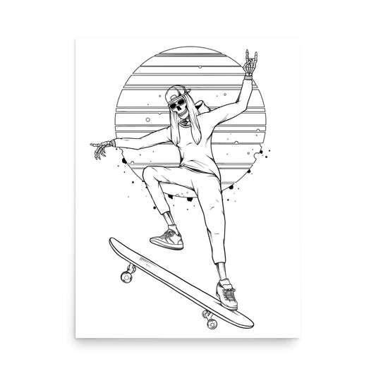 SKELLIES Skateboarding Woman Poster - Skeleton Skateboarding Graphic, Wall Art for Skateboard Enthusiasts