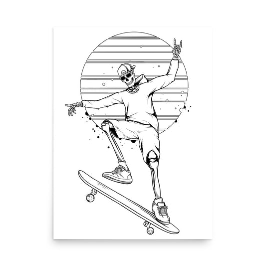 SKELLIES Skateboarding Man Poster - Skeleton Skateboarding Graphic, Wall Art for Skateboard Enthusiasts