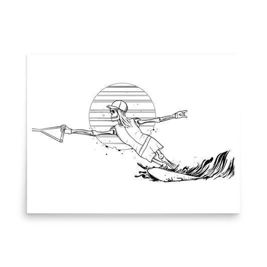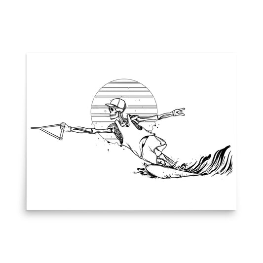 SKELLIES Woman Wakesurfing Wave Poster - Skeleton Wakesurfing Graphic, Wall Art for Wakesurfing Enthusiasts