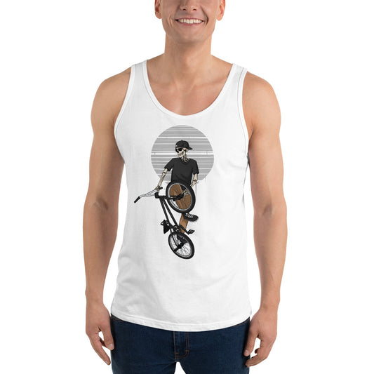 SKELLIES Men's Graphic Tank Top - Skeleton BMXing Print, Relaxed Fit, Casual Summer Wear