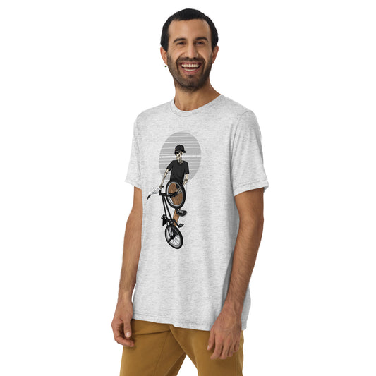 SKELLIES Men's Graphic Tri-Blend T-shirt - Skeleton BMXing T-shirt Print, Regular Fit, Casual Wear
