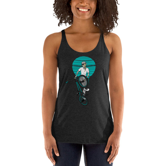 SKELLIES Women's Graphic Racerback Tank Top - Skeleton BMXing Tank Top Print, Relaxed Fit, Casual Wear