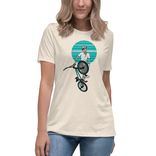 SKELLIES Women's Graphic T-shirt - Skeleton BMXing T-shirt Print, Relaxed Fit, Casual Wear