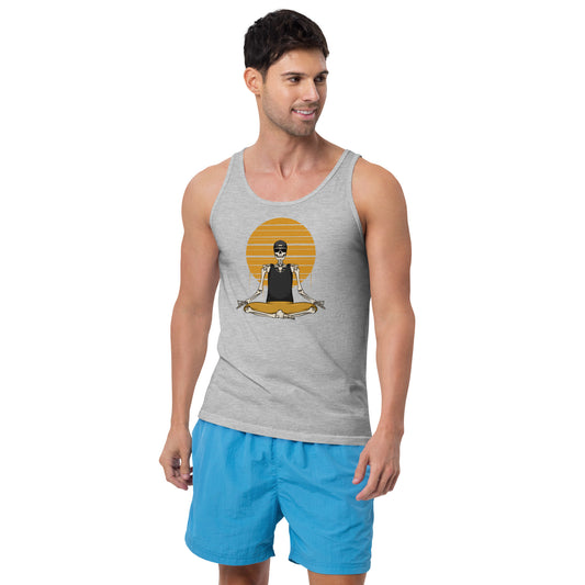 SKELLIES Men's Graphic Tank Top - Yoga Skeleton Print, Relaxed Fit, Casual Summer Wear
