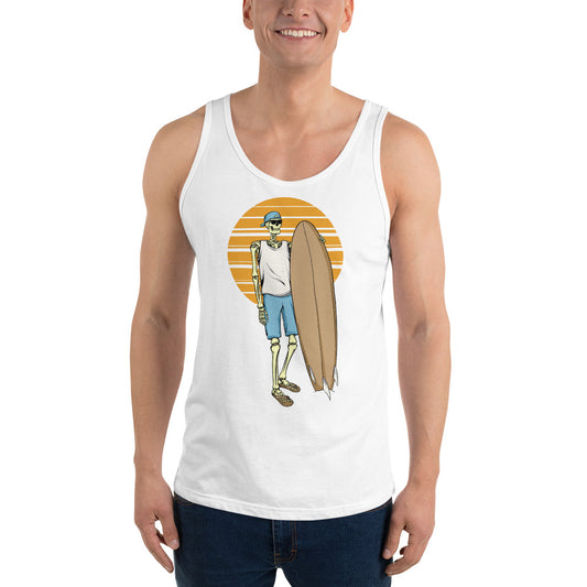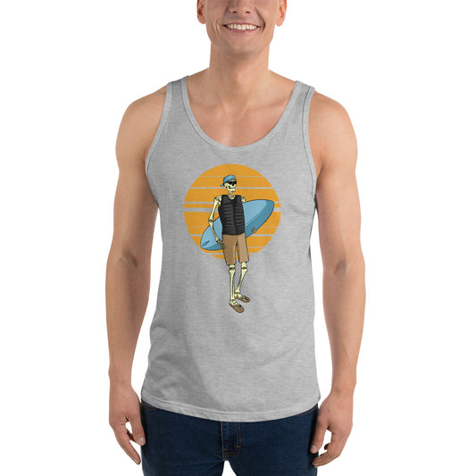 SKELLIES Men's Graphic Tank Top - Skeleton Surfing Print, Relaxed Fit, Casual Summer Wear
