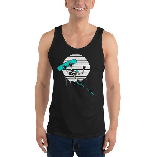 SKELLIES Men's Graphic Tank Top - Skeleton wake surfing Print, Relaxed Fit, Casual Summer Wear
