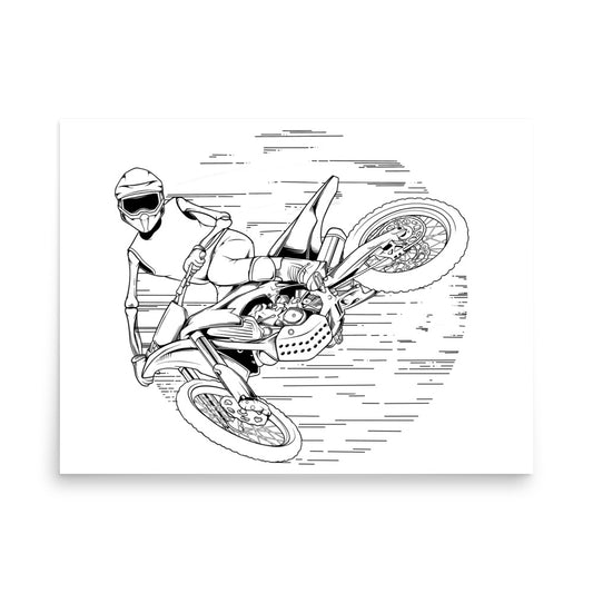 SKELLIES Motocross Man Poster - Skeleton Motocross Line Graphic, Wall Art for Motocross Enthusiasts