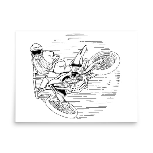 SKELLIES Motocross Woman Poster - Skeleton Motocross Line Graphic, Wall Art for Motocross Enthusiasts
