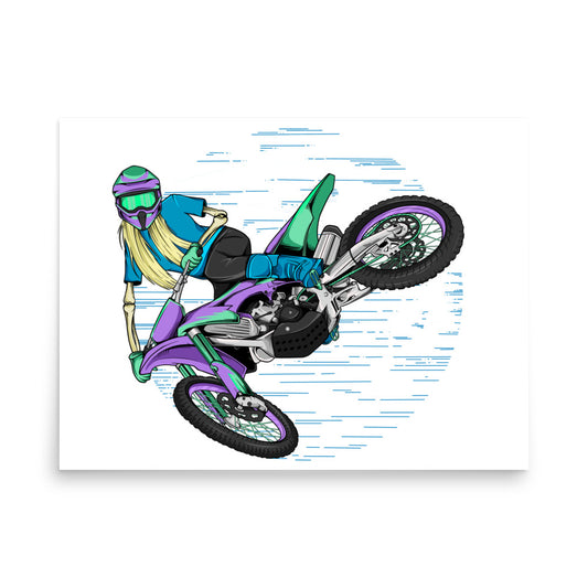 SKELLIES Motocross Woman Poster - Skeleton Motocross Graphic, Wall Art for Motocross Enthusiasts