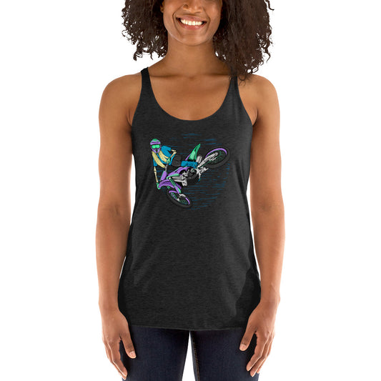 SKELLIES Women's Graphic Racerback Tank Top - Skeleton Motocross Tank Top Print, Relaxed Fit, Casual Wear