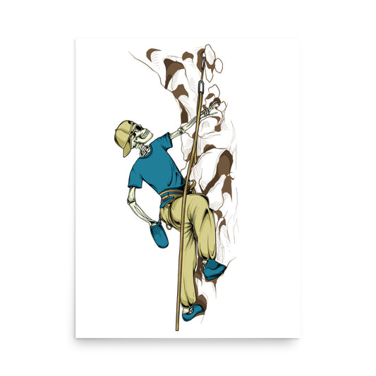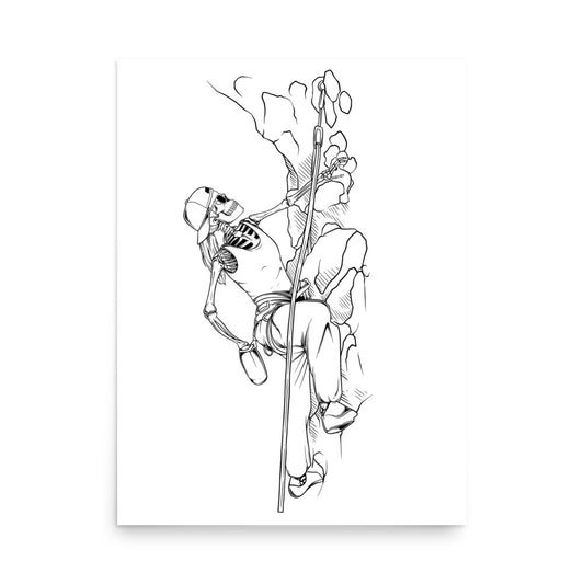 SKELLIES Rock Climbing Man Poster - Skeleton Rock Climbing Graphic, Wall Art for Rock Climbing Enthusiasts