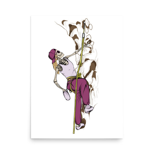 SKELLIES Rock Climbing Woman Poster - Skeleton Rock Climbing Graphic, Wall Art for Rock Climbing Enthusiasts