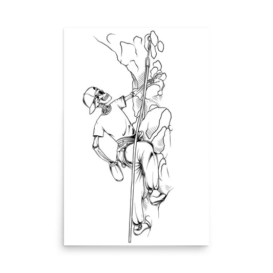 SKELLIES Rock Climbing Man Poster - Skeleton Rock Climbing Line Graphic, Wall Art for Rock Climbing Enthusiasts