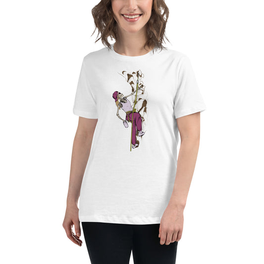 SKELLIES Women's Graphic T-shirt - Skeleton Rock Climbing T-shirt Print, Relaxed Fit, Casual Wear
