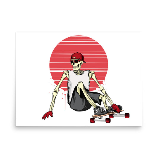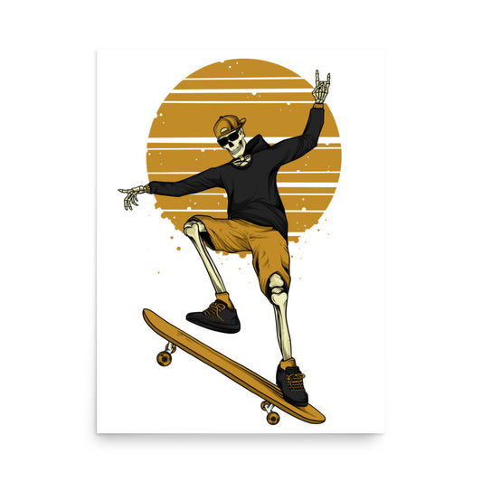 SKELLIES Skateboarding Man Poster - Skeleton Skateboarding Graphic, Wall Art for Skateboard Enthusiasts