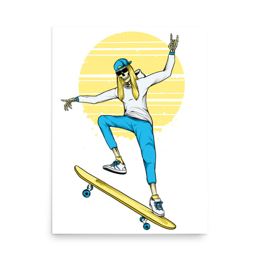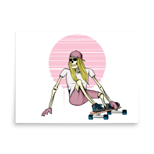 SKELLIES Skateboarding Woman Poster - Skeleton Skateboarding Graphic, Wall Art for Skateboard Enthusiasts