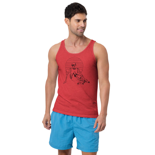 SKELLIES Men's Graphic Tank Top - Skeleton Longboarding Print, Relaxed Fit, Casual Summer Wear