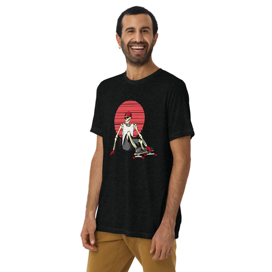 SKELLIES Men's Graphic Tri-Blend T-shirt - Skeleton Longboarding T-shirt Print, Regular Fit, Casual Wear