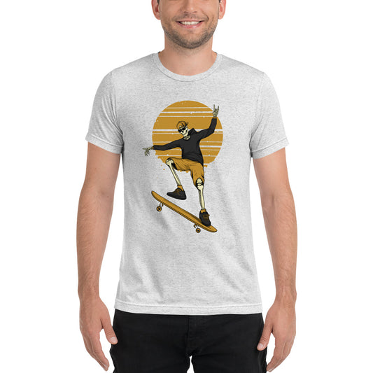 SKELLIES Men's Graphic Tri-Blend T-shirt - Skeleton Skateboarding T-shirt Print, Regular Fit, Casual Wear