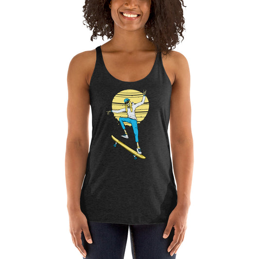 SKELLIES Women's Graphic Racerback Tank Top - Skeleton Skateboarding Tank Top Print, Relaxed Fit, Casual Wear
