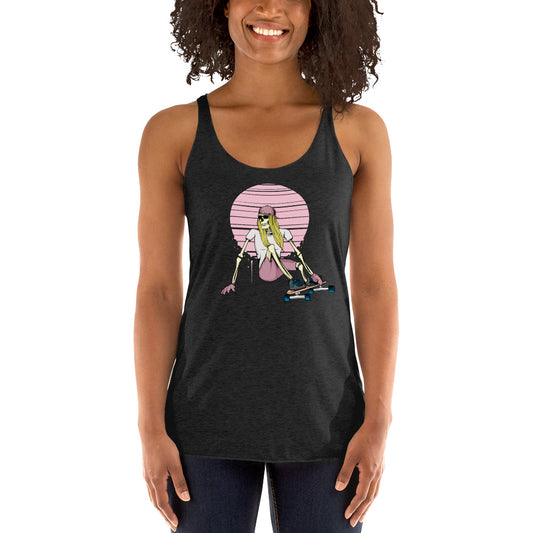 SKELLIES Women's Graphic Racerback Tank Top - Skeleton Longboarding Tank Top Print, Relaxed Fit, Casual Wear