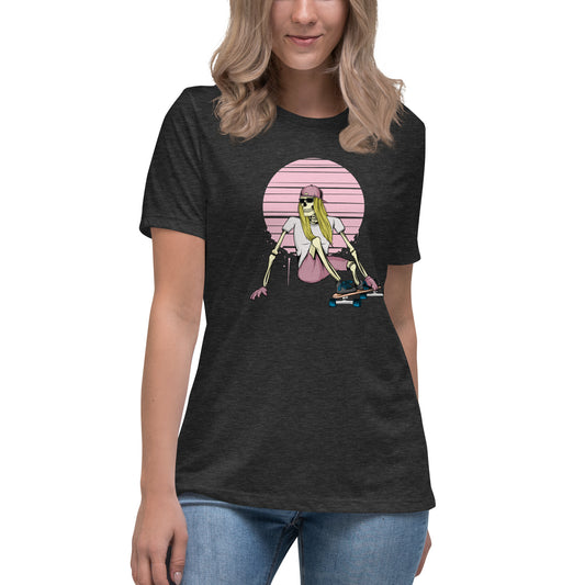 SKELLIES Women's Graphic T-shirt - Skeleton Longboarding T-shirt Print, Relaxed Fit, Casual Wear