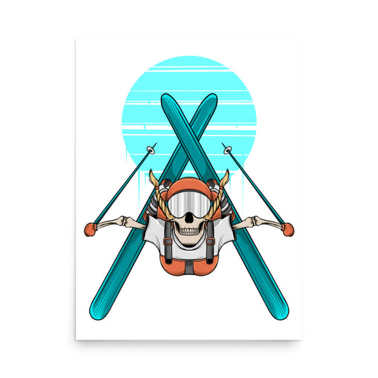SKELLIES Skiing Man Poster - Skeleton Skiing Graphic, Wall Art for Skiing Enthusiasts