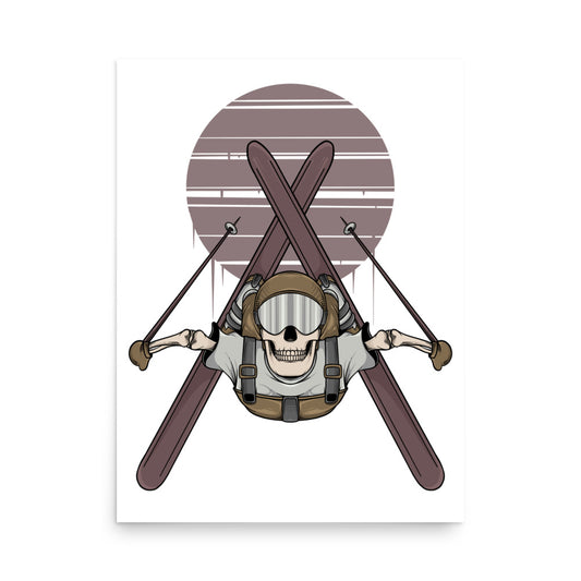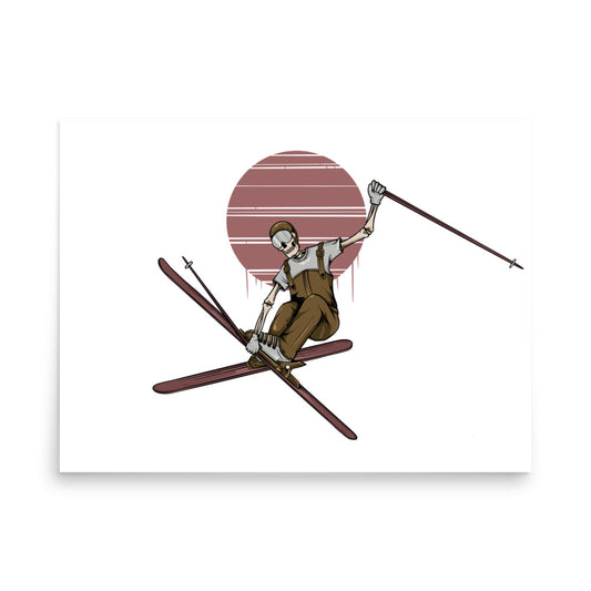 SKELLIES Ski flip Man Poster - Skeleton Skiing Graphic, Wall Art for Skiing Enthusiasts