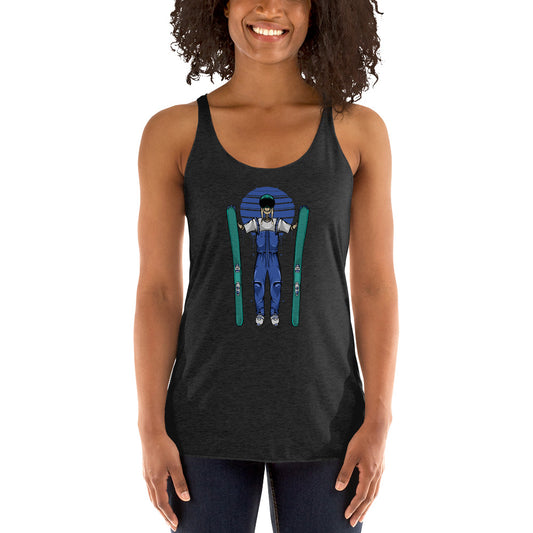 SKELLIES Women's Graphic Racerback Tank Top - Skeleton Skiing Tank Top Print, Relaxed Fit, Casual Wear