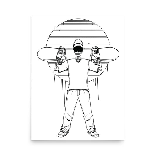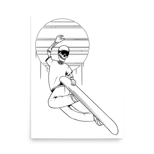 SKELLIES Snowboarding Man Poster - Skeleton Snowboarding Line Graphic, Wall Art for Snowboarding Enthusiasts
