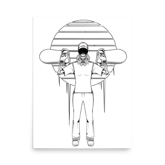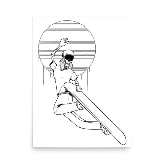 SKELLIES Snowboarding Woman Poster - Skeleton Snowboarding Line Graphic, Wall Art for Snowboarding Enthusiasts