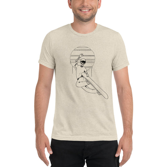 SKELLIES Men's Line Graphic Tri-Blend T-shirt - Skeleton Snowboard Grab T-shirt Line Print, Regular Fit, Casual Wear