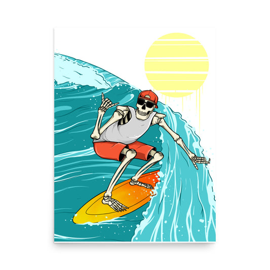SKELLIES Wakesurfing Man Poster - Skeleton Wakesurfing Graphic, Wall Art for Wakesurfing Enthusiasts