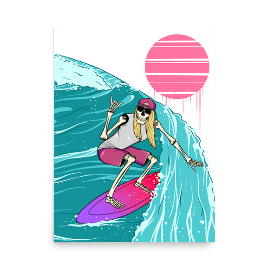 SKELLIES Wakesurfing Woman Poster - Skeleton Wakesurfing Graphic, Wall Art for Wakesurfing Enthusiasts