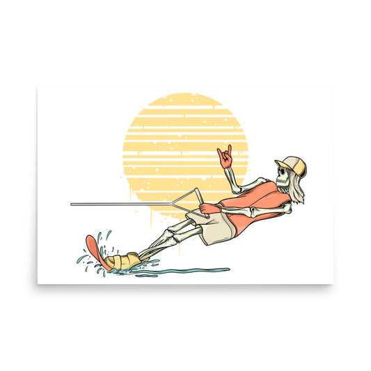 SKELLIES Waterskiing Man Poster - Skeleton Waterskiing Graphic, Wall Art for Waterskiing Enthusiasts