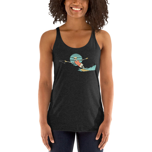 SKELLIES Women's Graphic Racerback Tank Top - Skeleton Water Skiing Tank Top Print, Relaxed Fit, Casual Wear